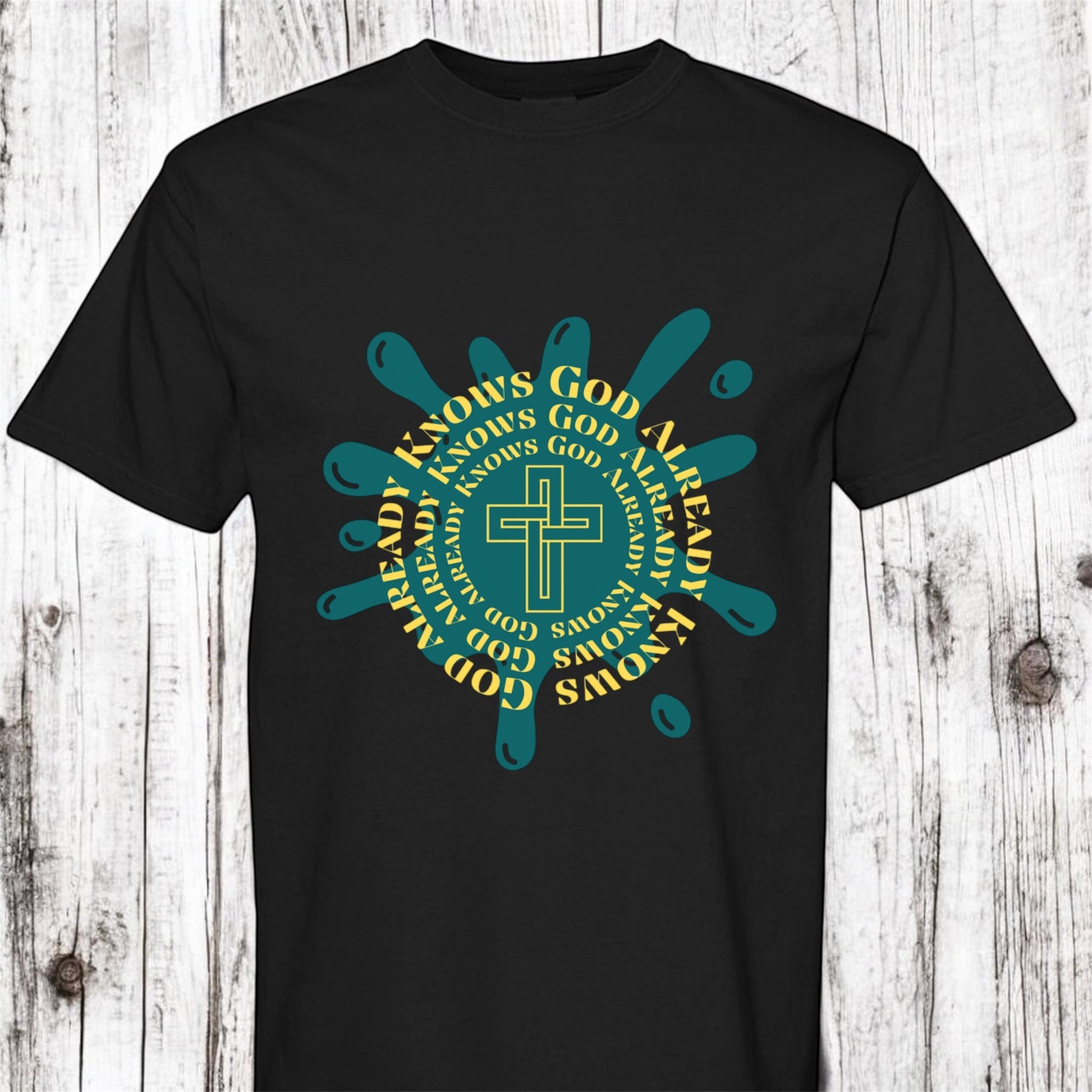 This Christian tee features a powerful message that serves as a daily reminder of faith and inspiration. Made with high-quality materials, this tshirt is perfect for those seeking spiritual guidance and comfort. Let the world know that God is always present with our God already knows tee.