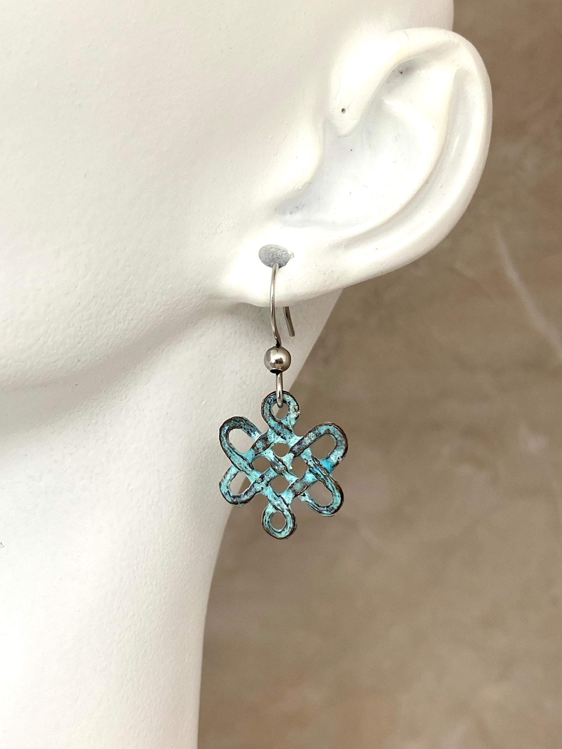 These earrings feature a unique patina charm that adds a touch of elegance to any outfit. Lightweight and simple in design, they provide comfort and effortless style.