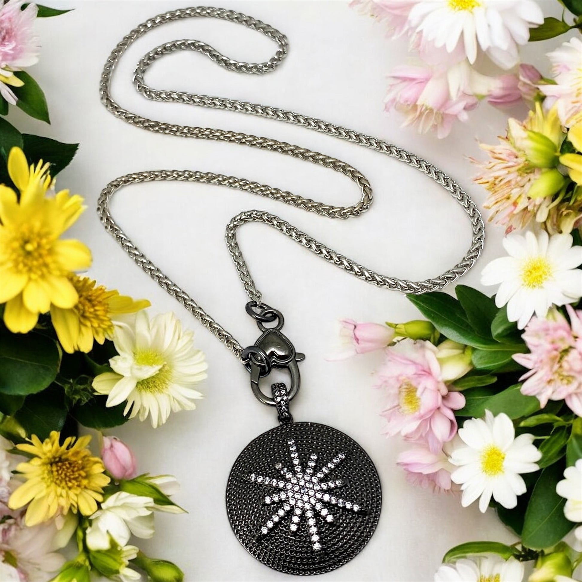 Unleash your inner star power with our pave the way necklace. Featuring a stunning 1.5 inch pave star pendant, this necklace is both simple and lightweight, making it perfect for everyday wear. The oversized heart clasp adds a touch of romance, while the silver lantern chain provides a stylish feel. The clasp is added in the front for extra style, and easy application. Get ready to shine with this must-have accessory.